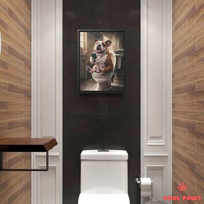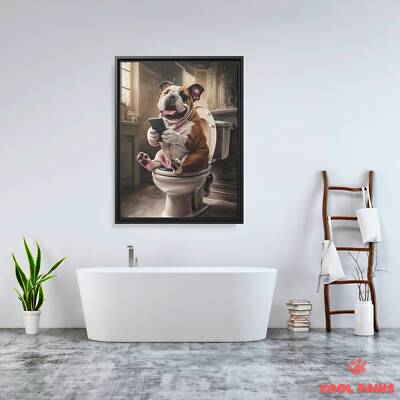 English Bulldog on the Toilet with a Smartphone