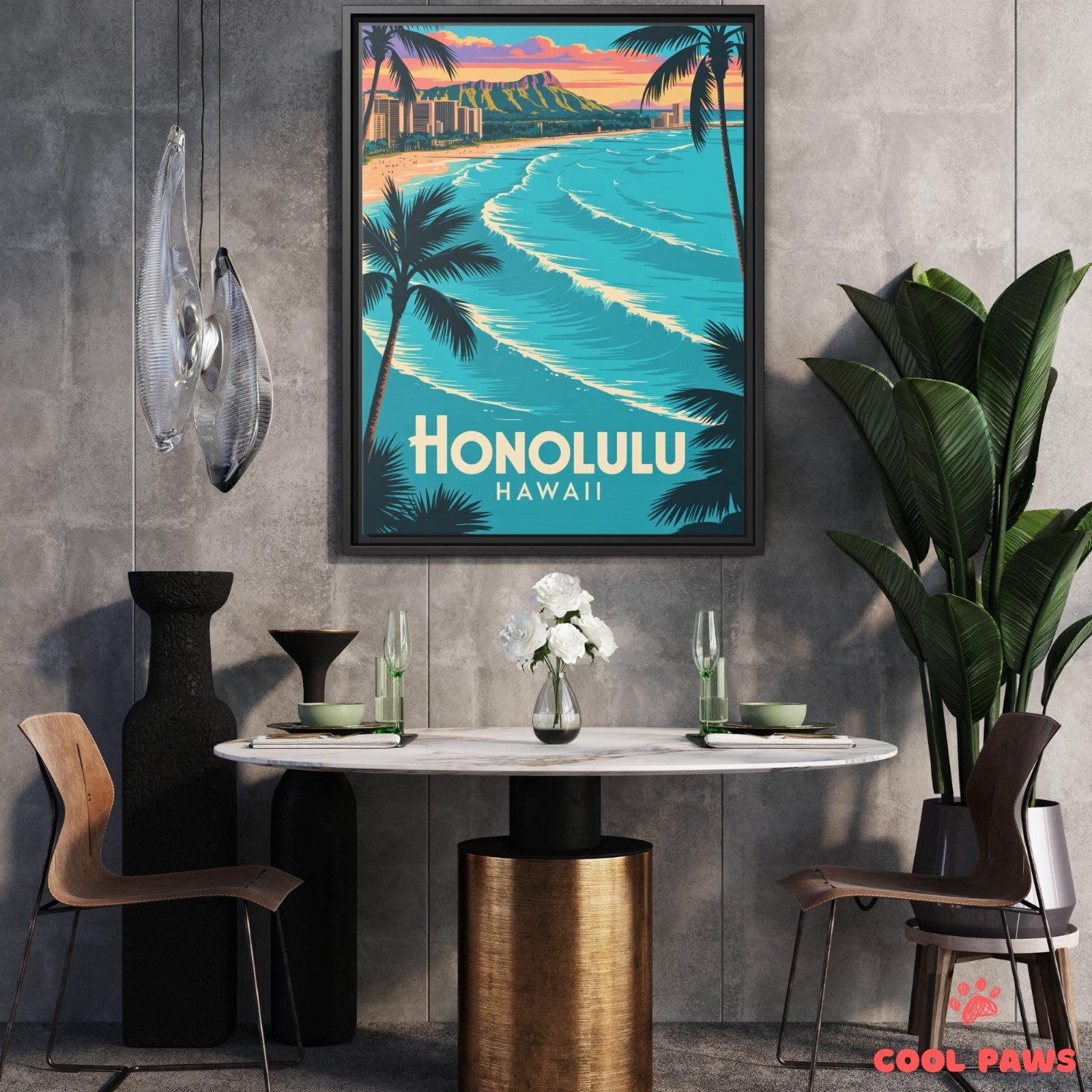 Honolulu Travel Print | Waikiki Beach Hawaii