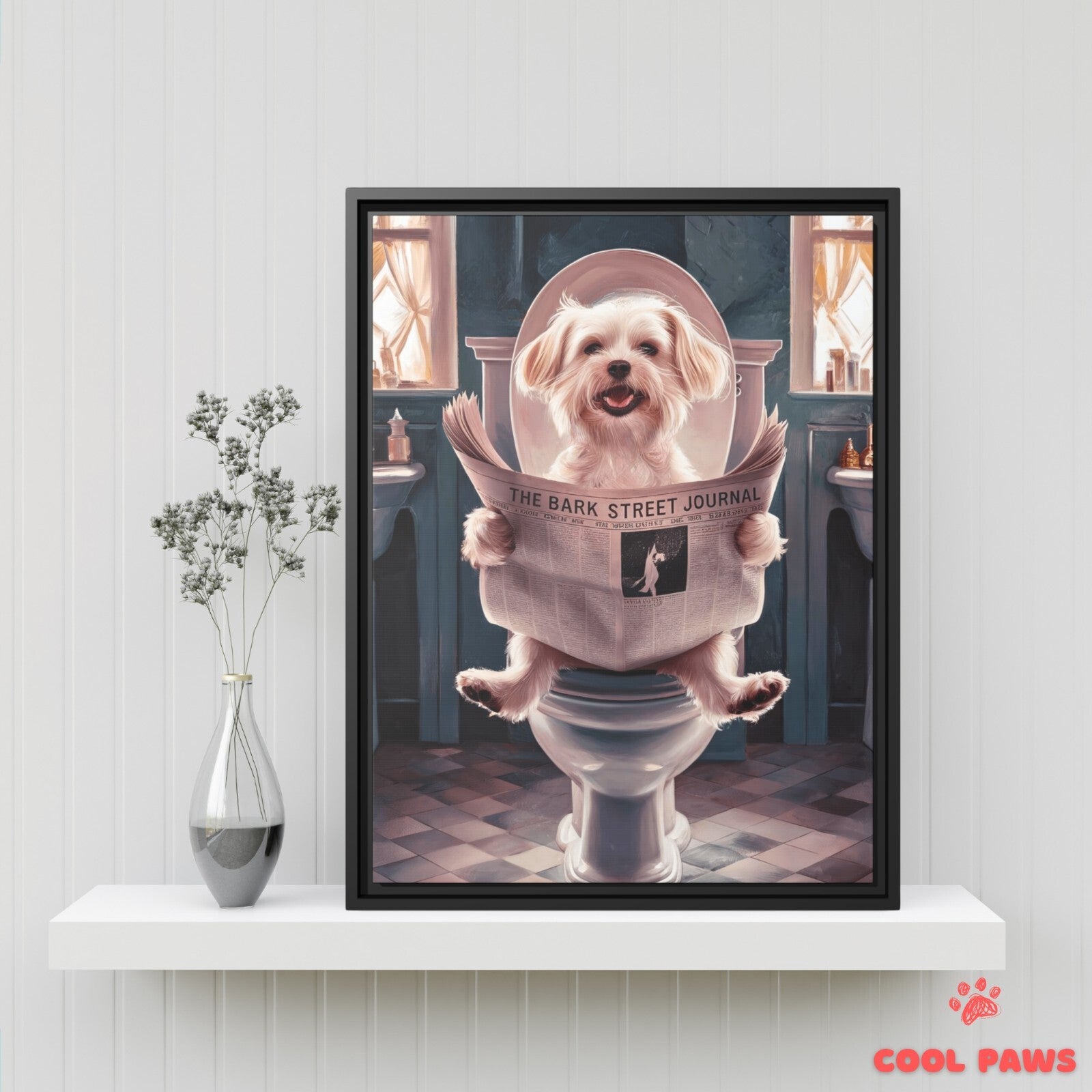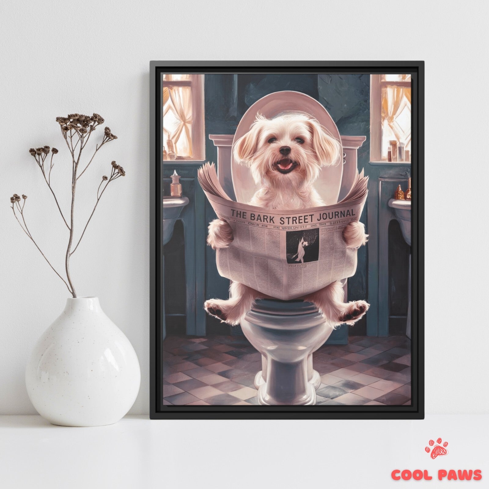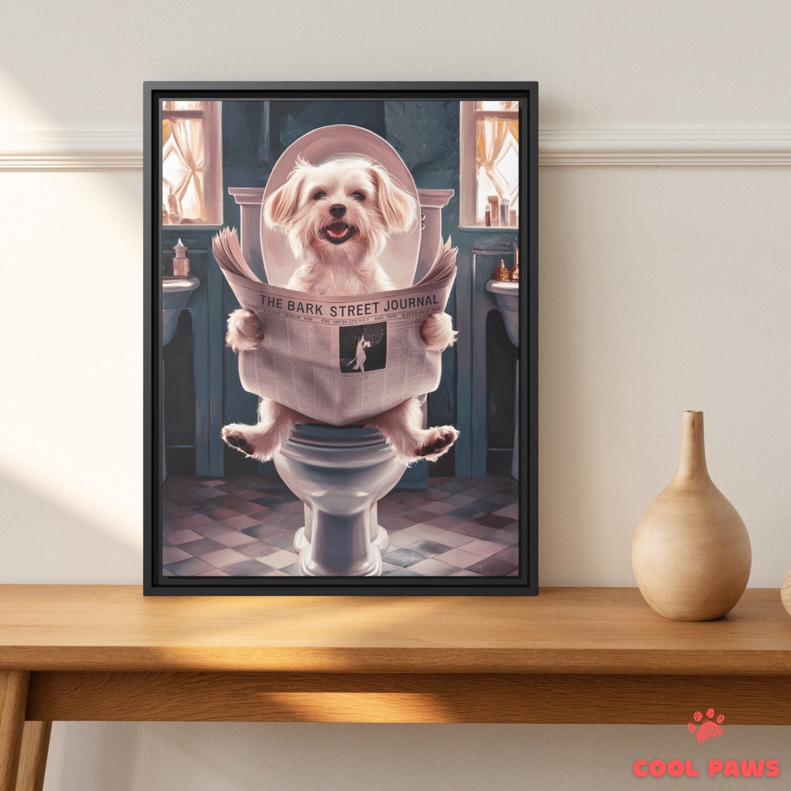 Beagle Reading the Newspaper on the Toilet