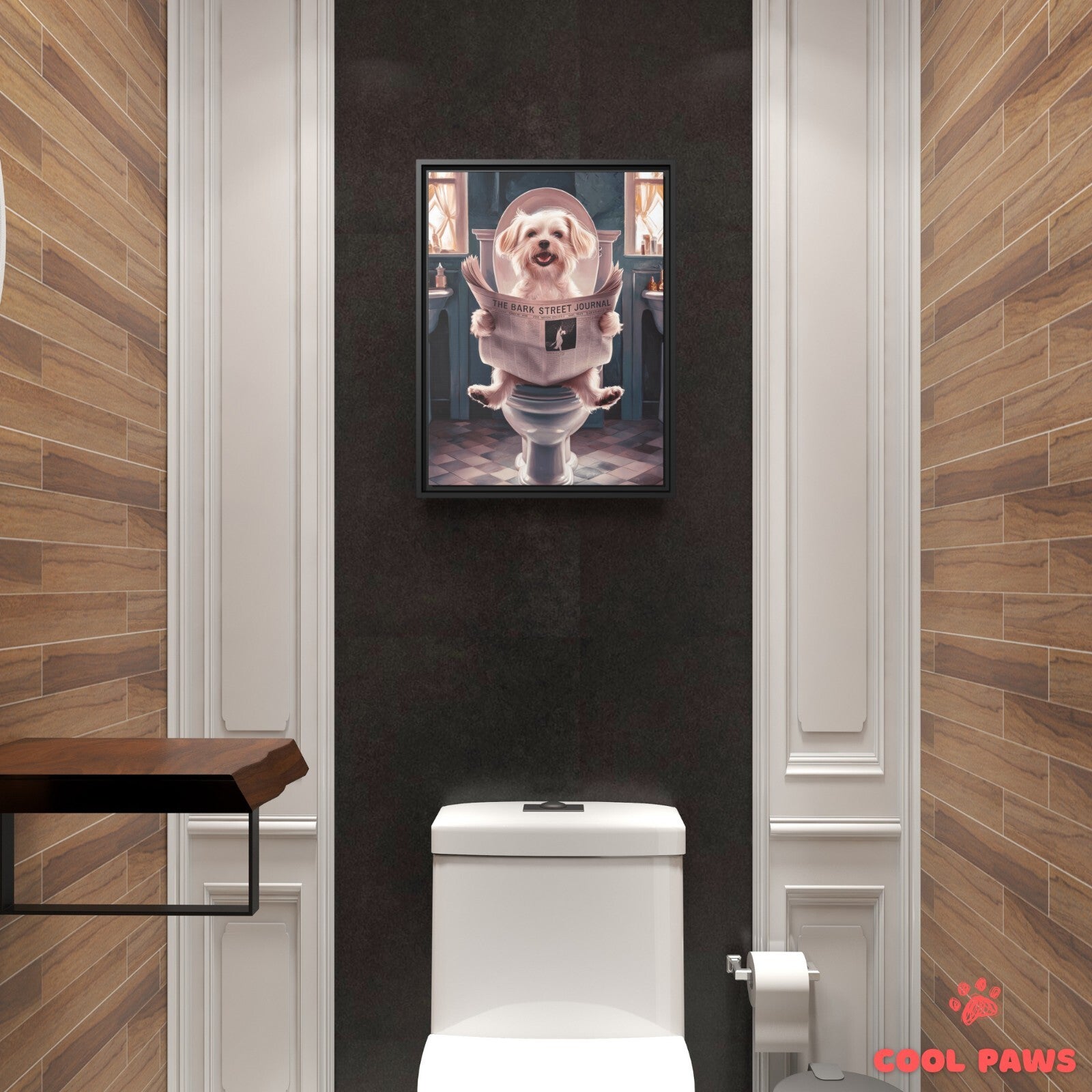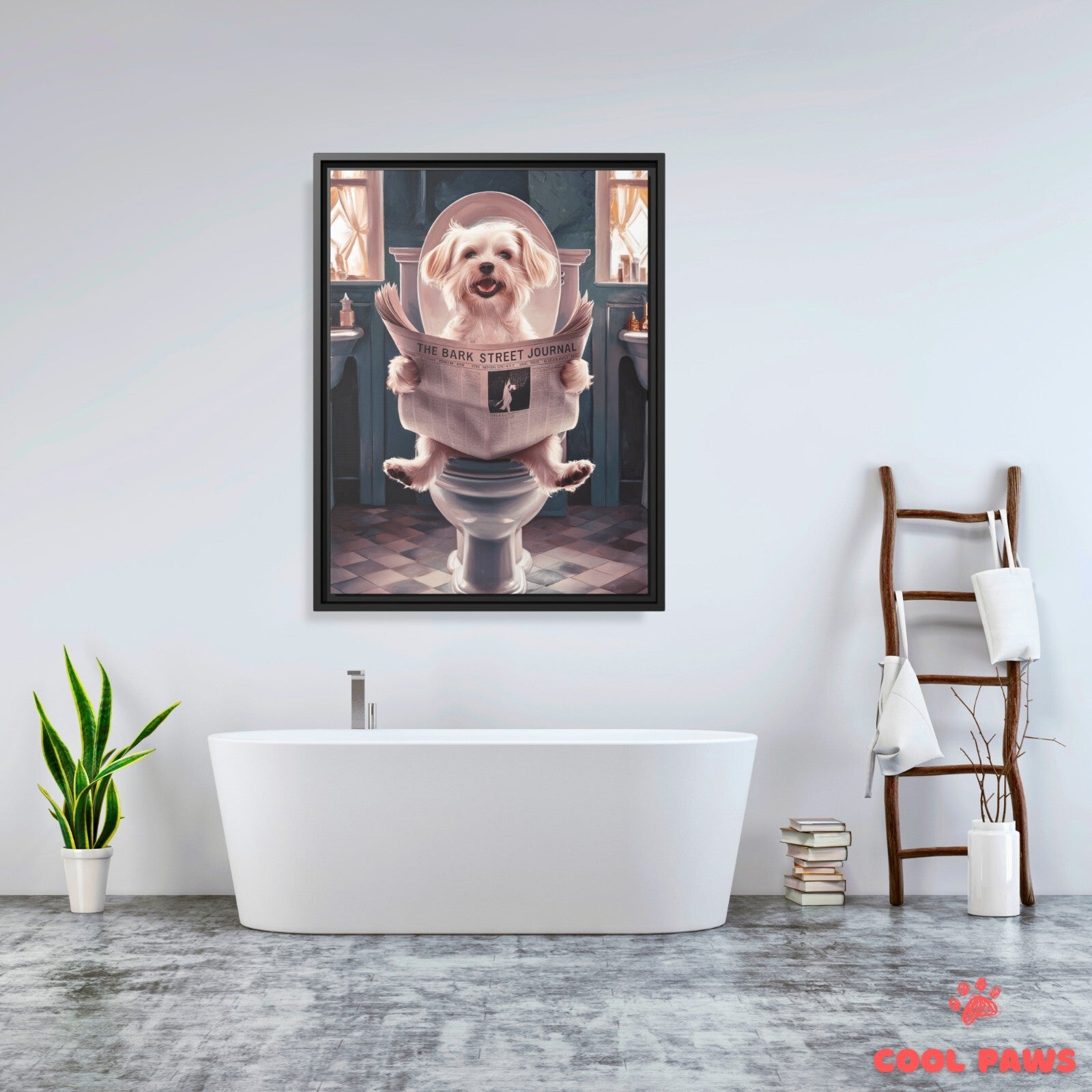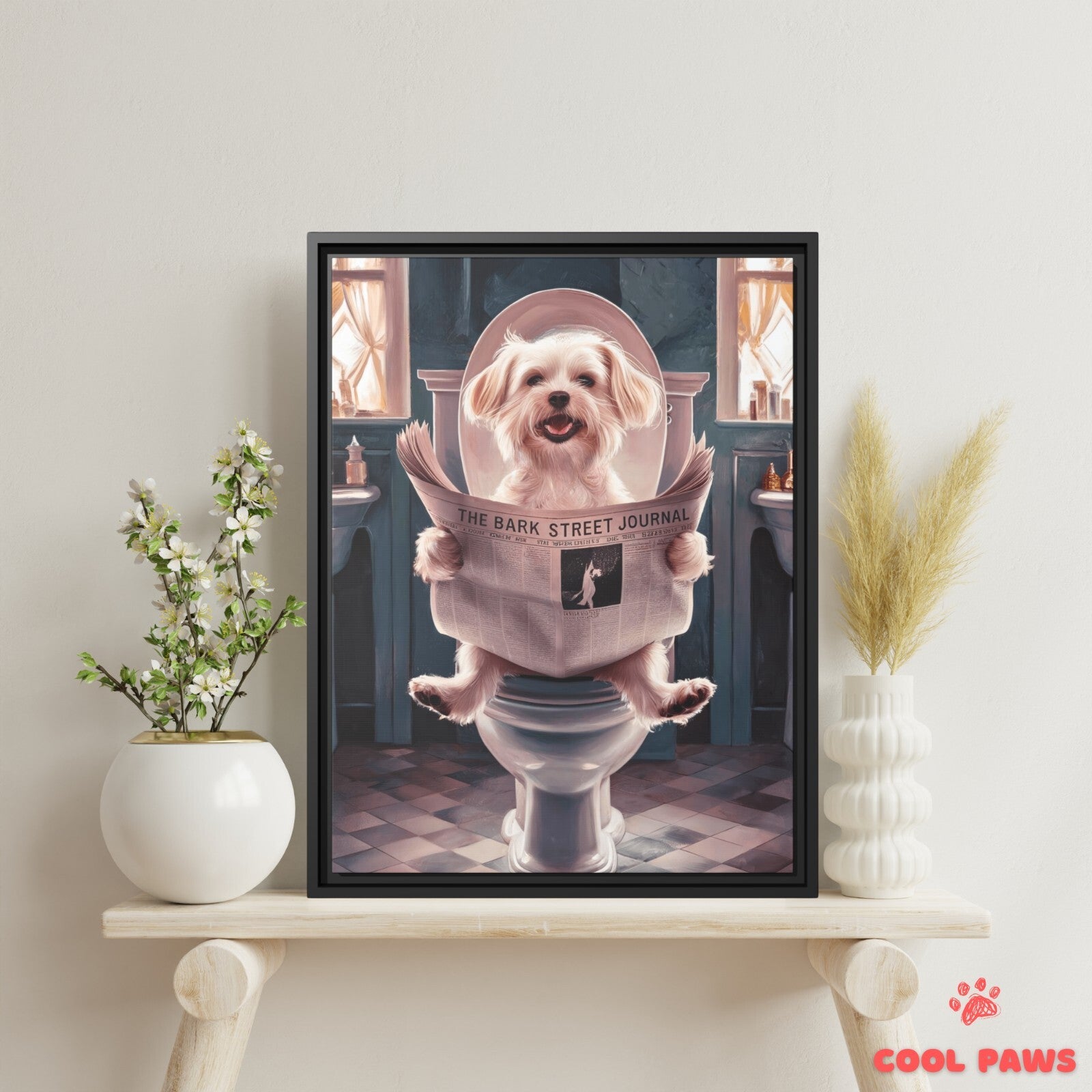 Beagle Reading the Newspaper on the Toilet