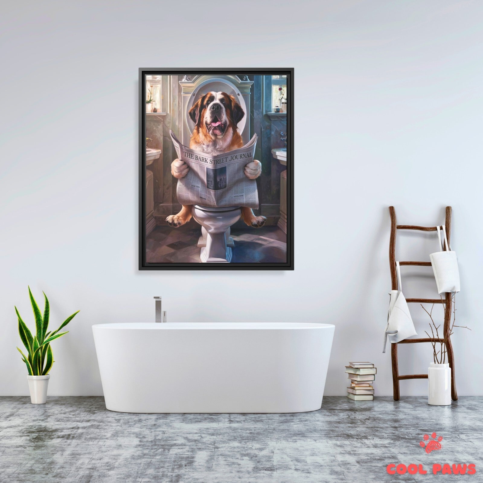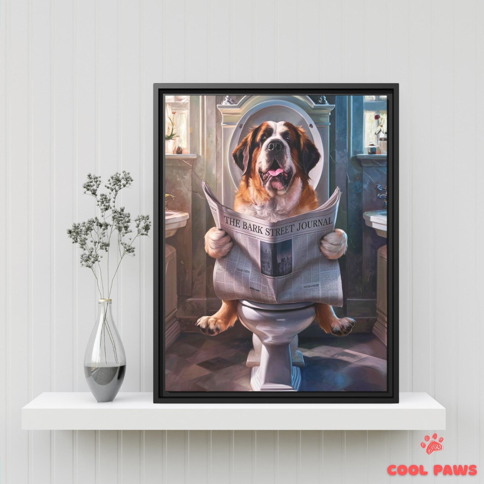 Saint Bernard Reading the Newspaper on the Toilet